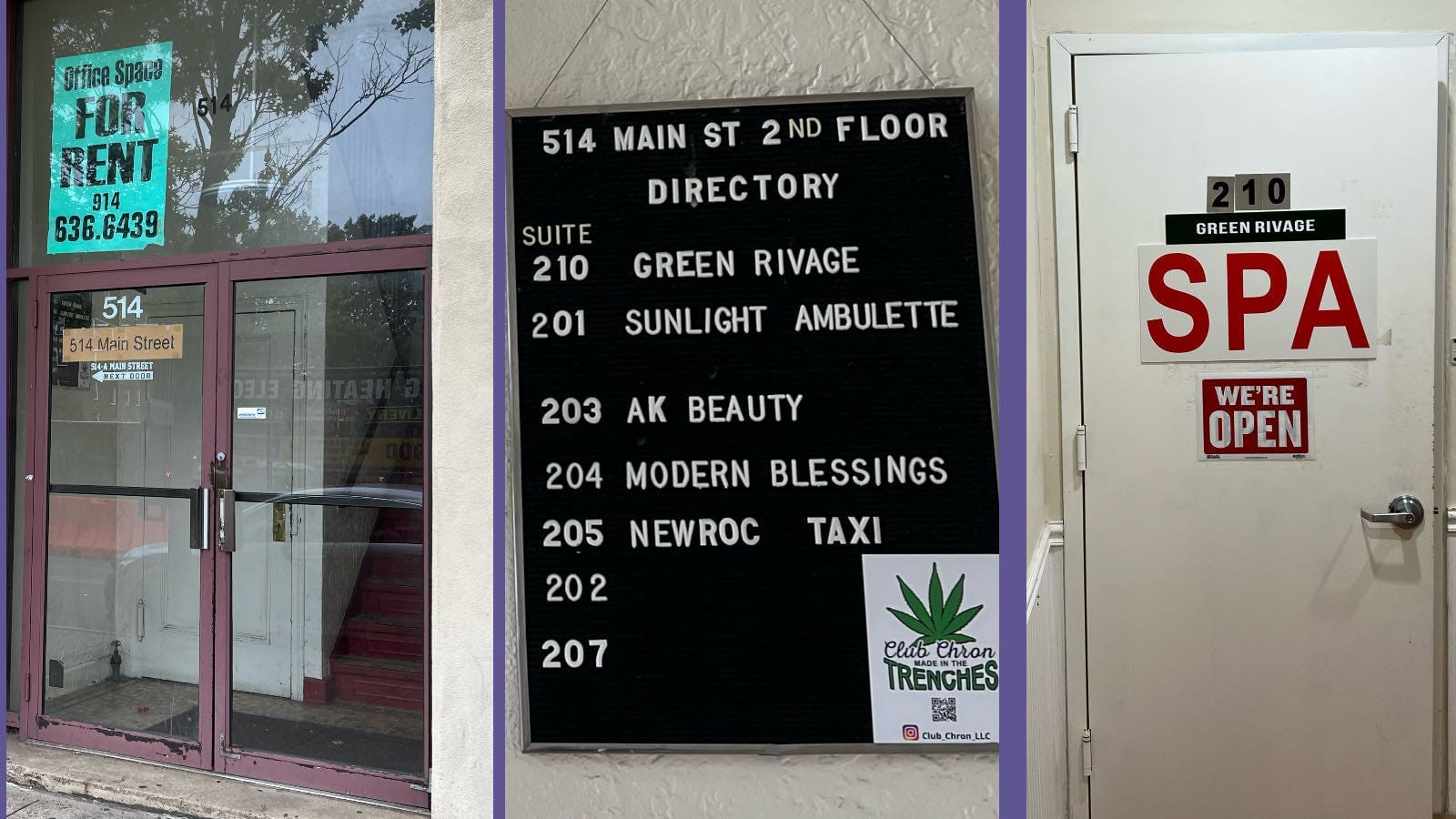 I did go by locations advertised on bedpage.com: 514 Main Street and 271 North Avenue, the K Building. I walked around the exterior and the lobbies and took photos at each location.