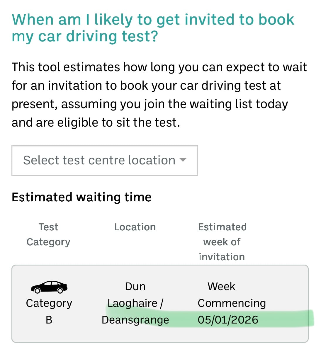 DUBLIN, IRELAND (May 18, 2025) — Last week, I posted a picture of myself in my driving instructor’s car after finishing my six required driving lessons. This allowed me to log into Ireland’s National Driver Licence Service (NDLS) and book a driving test at the testing center closest to my home. The NDLS aims to schedule tests within 10 weeks, but a shortage of testers, combined with high demand—partly due to an influx of about 125,000 Ukrainians since the war started—has stretched wait times. I paid €85 up front to secure a test slot on January 5, 2026, meaning a 34-week wait. Ack!