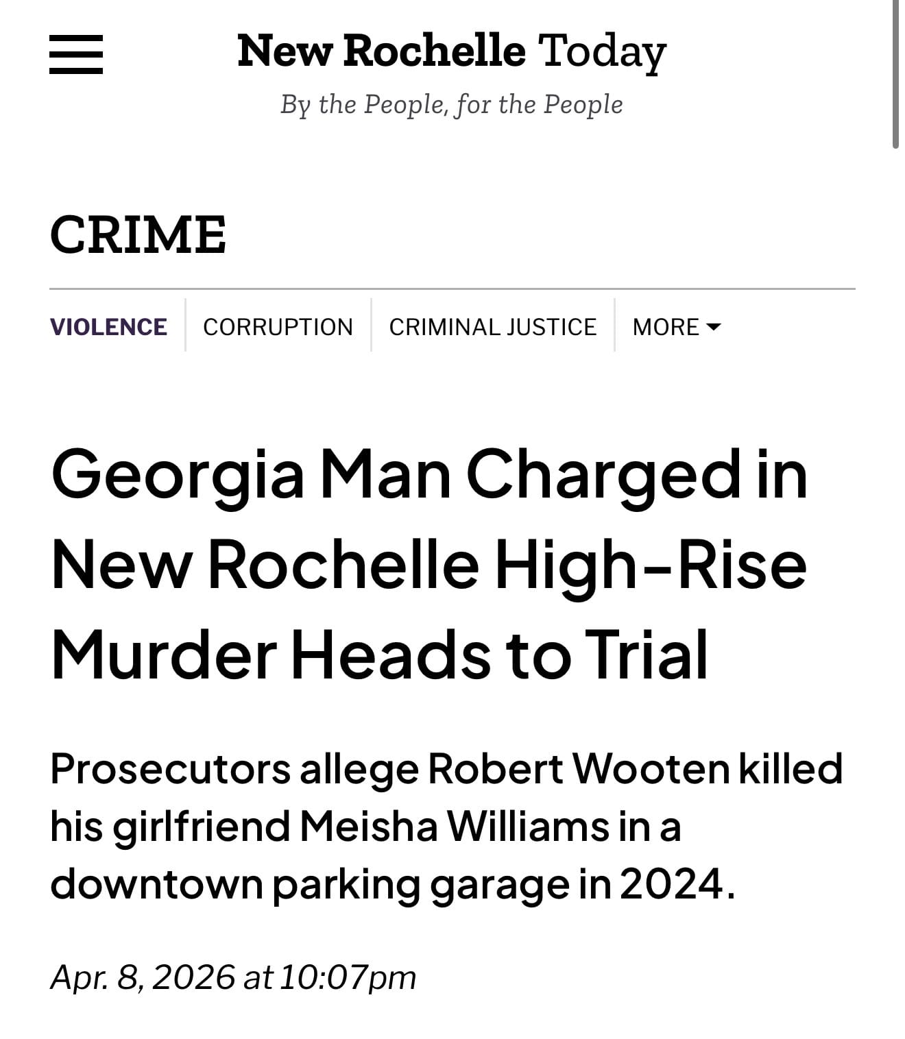 - NationalToday (“New Rochelle Today”): Georgia Man Charged in New Rochelle High-Rise Murder Heads to Trial