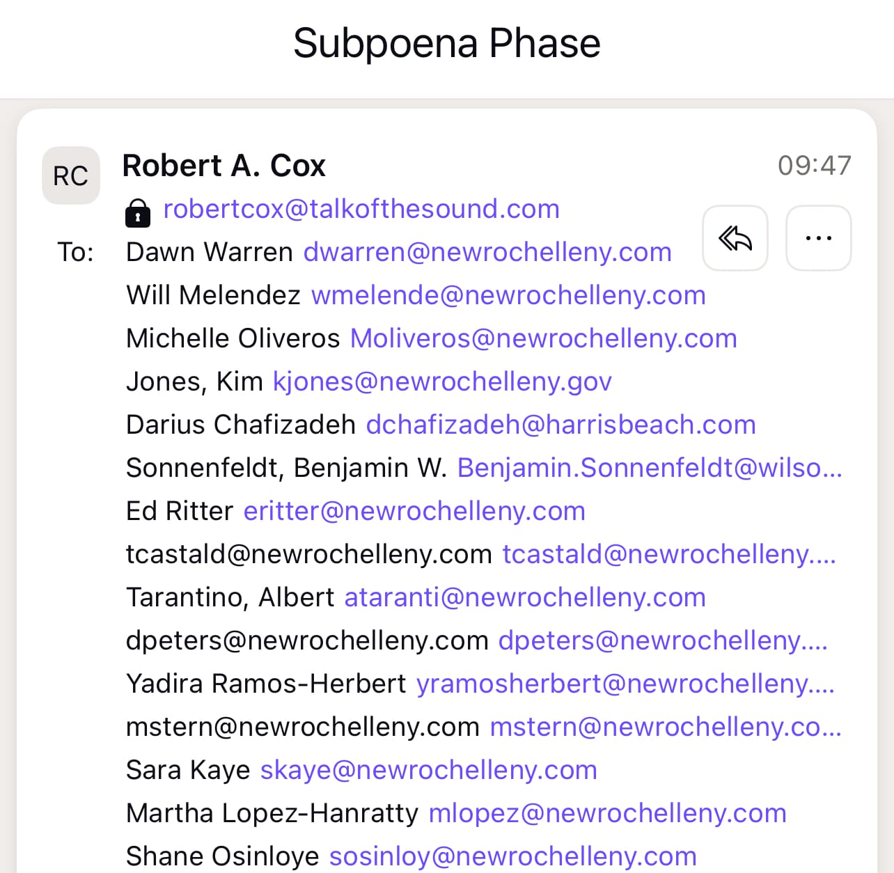 DUBLIN, IRELAND (June 15, 2025) — This is an email I sent to members of the New Rochelle City Council moments ago.