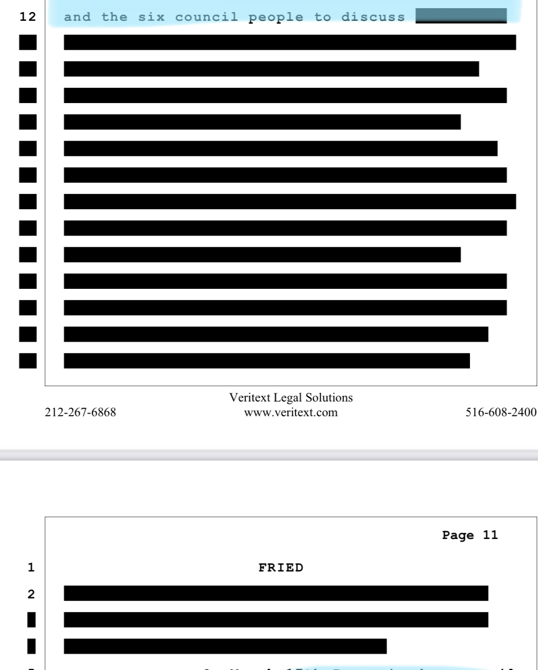 FRIED: So it all began on March 8th, the City Council meeting. We went into executive session which is just the seven of us, the mayor and the six council people to discuss REDACTED