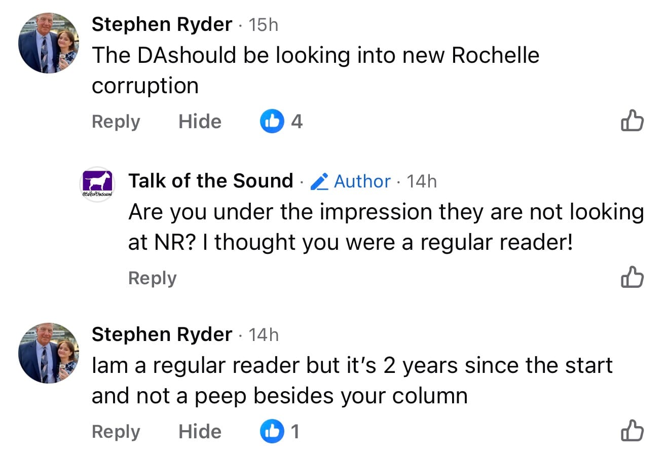 Typing out a response, got me thinking. Why haven’t more media outlets picked up on my 19 months of reporting on corruption at New Rochelle City Hall (and beyond). What I found was that many of Westchester’s media outlets are deliberately inoffensive as a business strategy. They are not cowardly. They have a business model that relies on not scaring away advertisers or alienating readers. Obviously, I do not care about that; my focus is a trust relationship with readers. If advertisers want to tag along fine but I do not concern myself with them.